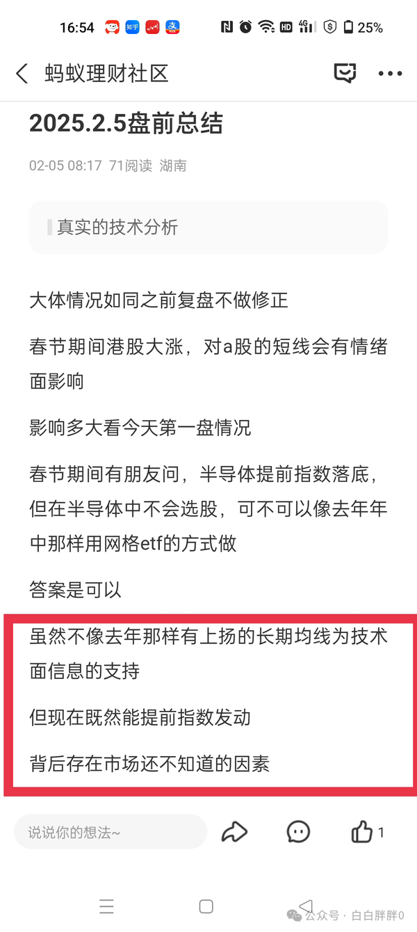 而左侧,就是按计划挂单机械交易,不用想别的,就比如昨早盘前总结说的半导体,即使是昨天开盘追高进(我昨天开盘补回部分仓位开始网格,以昨天开盘价计算网格中线),现在浮盈也有4%了不是(上去10%卖出一格,再回来继续网格,如果直接起涨就转右侧)