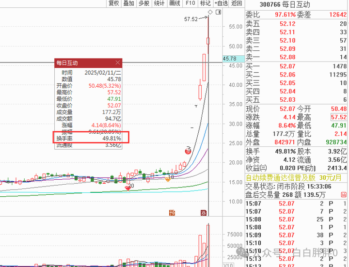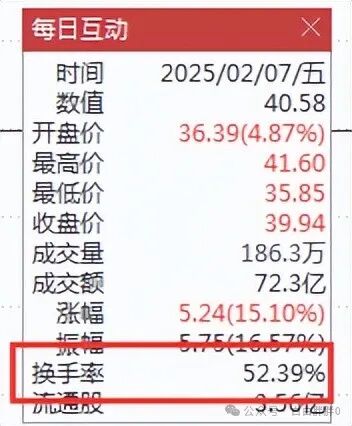 的确,2月7日还超过50%的换手,昨天还涨停