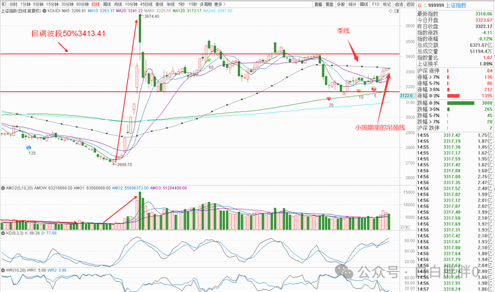 K线角度,上证是小周期里的吊颈线,偏空解读