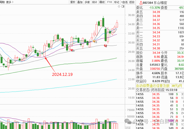 上一次用这个技术面解读的股票是这天的东山精密