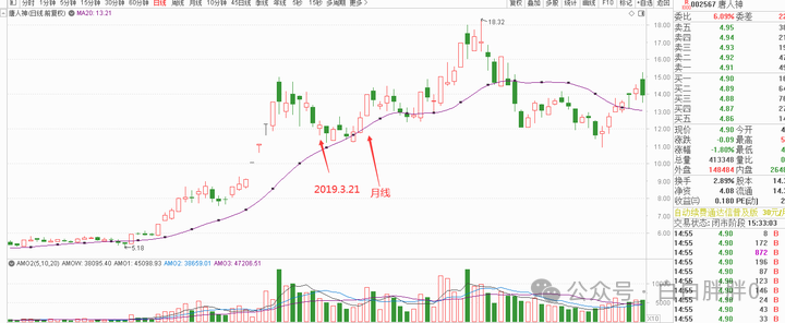 今天微博有人问到昨天举例的北陆药业今天上涨了,明天回不到月线该怎么面对。
