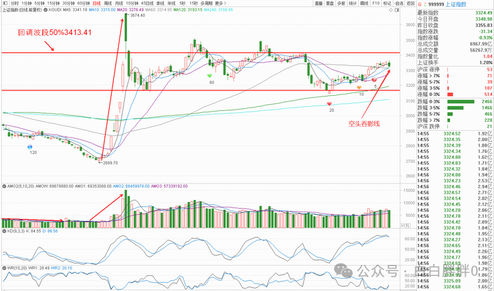 K线角度,上证是空头吞影线,短线偏空解读