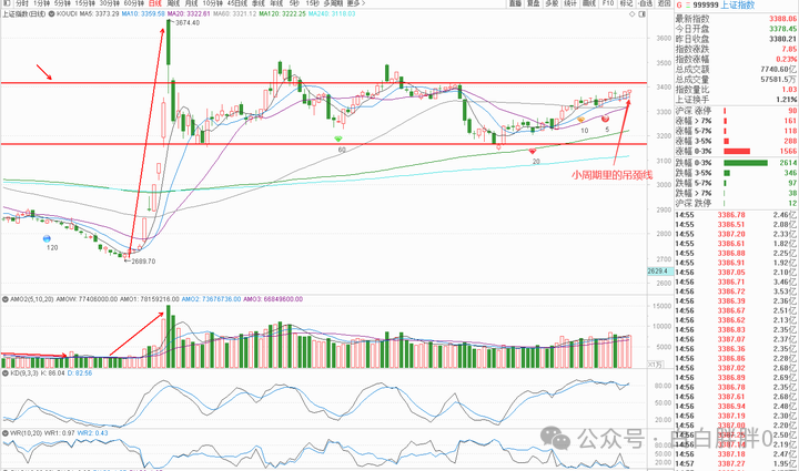 K线角度,上证是小周期的吊颈线,短线偏空解读