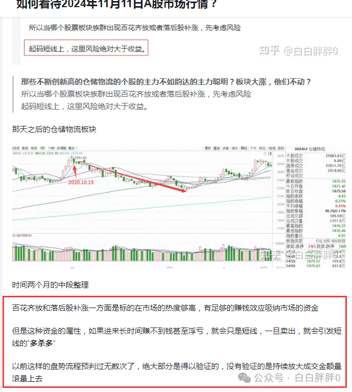 所以当哪个股票板块族群出现百花齐放或者落后股补涨,先考虑风险