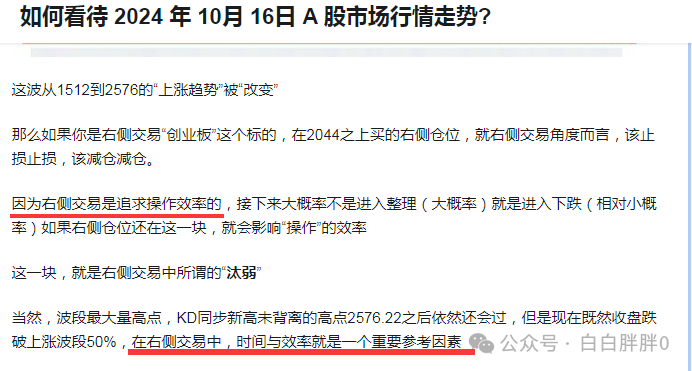 右侧交易,你要参照的是操作标的自身的技术面信息制定交易策略,而板块和大盘这些平均值,只是你用来比较强弱的参照物