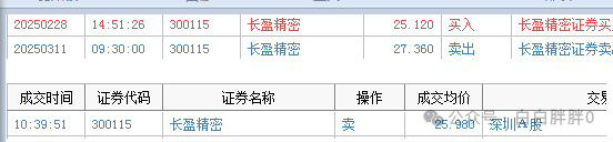 比如之前25.12试错的长盈精密,之前跌破量价节点27.4和回撤最大盈利一半我止盈了两份(很挫,3月10日没跌破,11日大幅低开,开盘止盈卖的),今天跌到我浮盈的5%,25.88,我止盈了剩下两份(本来还有一份是第二个量价节点25.38止盈,但是早上在外办事,没时间看盘,背离之后三天没创高,五天没补量就干脆全出了(再次吐槽东方证劵和同花顺的条件单,有概率不响应,所以没用,要不然也不用看盘做了))