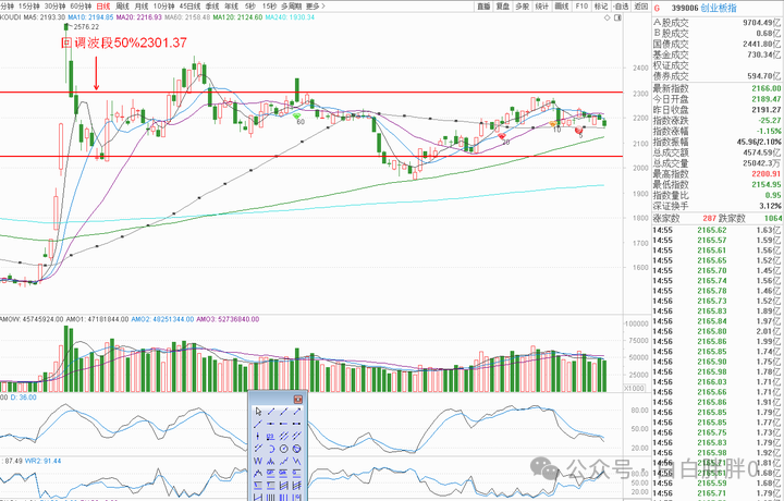 没量自然会被下弯的五日线压制,下弯的季线拖拽,上证还差一些,创业板盘中已经跌破季线2158