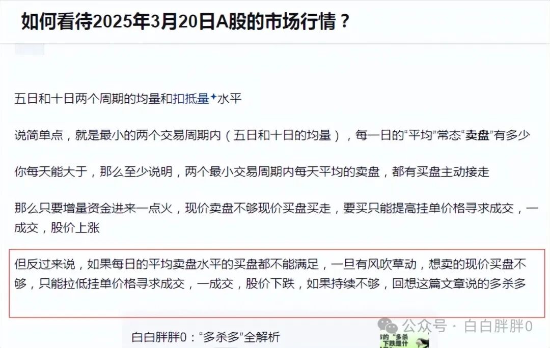 但反过来说,如果每日的平均卖盘水平的买盘都不能满足,一旦有风吹草动,想卖的现价买盘不够,只能拉低挂单价格寻求成交,一成交,股价下跌,如果持续不够,回想这篇文章说的多杀多