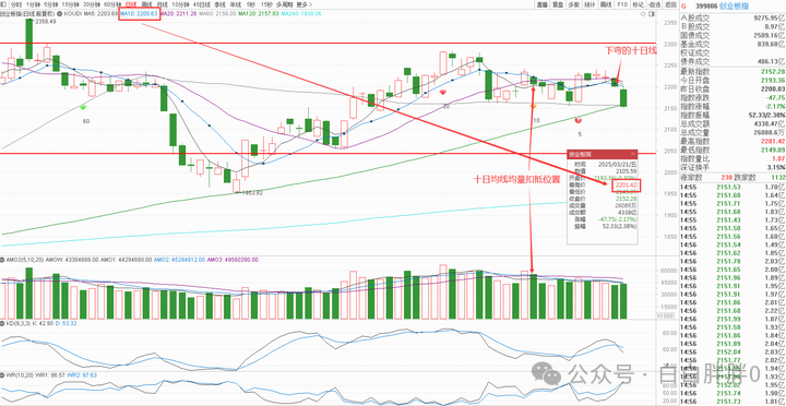 上证被扣高位导致下弯的五日线压制下跌,创业板被下弯的十日线压制下跌(季线已经走平,无拖拽力了)