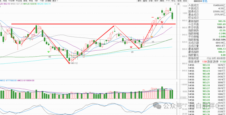 然后今天的有色,跌幅也颇重,挺多朋友也问了操作的事情