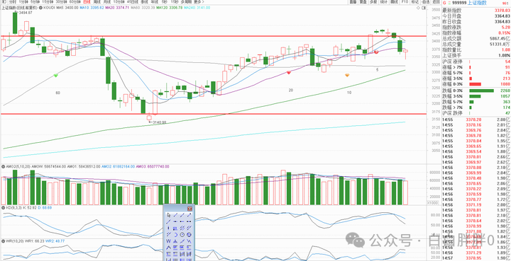 今早说下这个,是要用五日均线还未死叉十日均线的上证给大家做例子,毕竟最有说服力的不是事后看图说话,而是用未来没发生的行情做实例