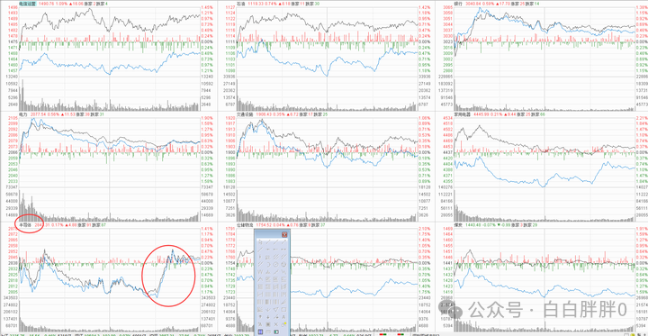 而今天结构上,值得具体说一下的,就是下午盘最后的这个拉抬