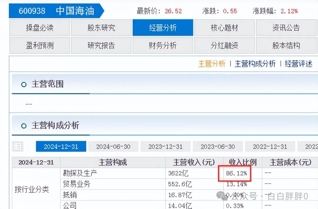 而海油勘探开采占营收比重是86%