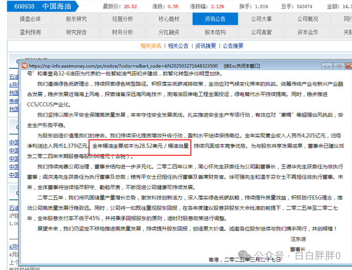 而且,海油的石油开采成本,是远低于石油石化的