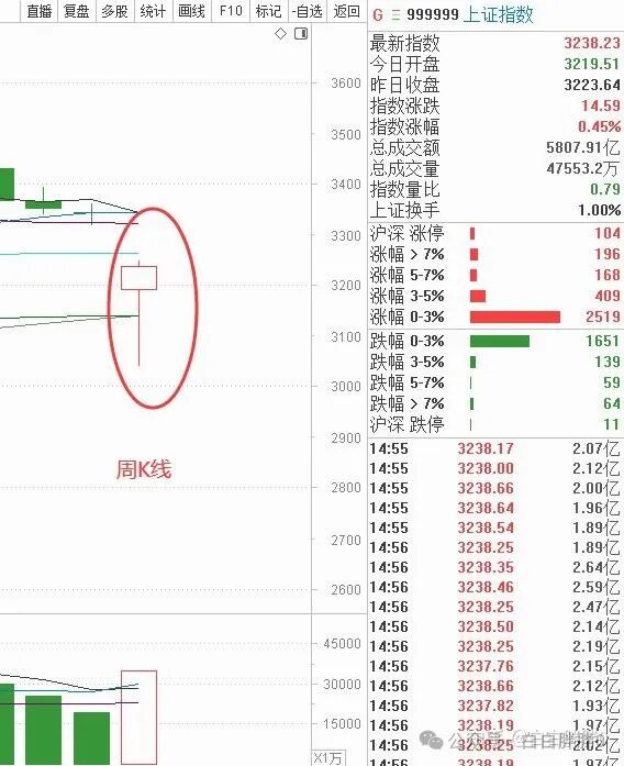嗯,为了加强可信度,用前一天对A股整体说的这个日线下影线和周线下影线做例子