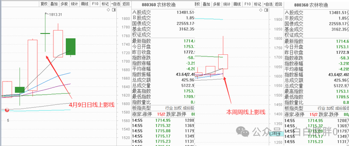 4月9日农林牧渔的日线上影线和本周周线上影线