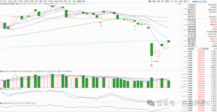 K线角度,今天两个指数无明确多空意义,如同早上开盘八法所述,只是盘整而已(上证如预期收小阳小阴,创业板差0.03%收中阴)