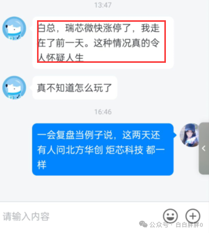 比如这位朋友,今天瑞芯微大涨6.47%,他卖在了前一天,所以有懊恼的感觉