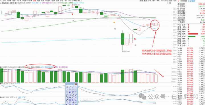 上证今天开低收高收阳线吞噬,如果明日收跌为小周期里的双人殉情,如果明日收涨为上涨后的阳线吞噬,明天发生了再来说