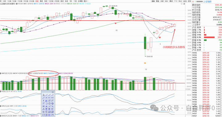 所以今天日线本周周线大概率不收最高留“ 上影线 ”