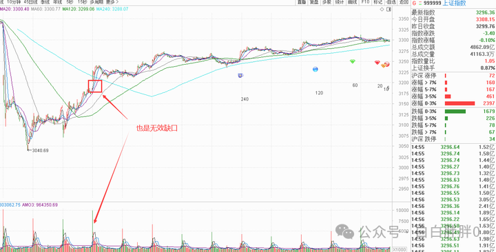 但是都收阴,且无法大于上涨趋势基准量的情况下(上证第一盘跳空增量收阴)