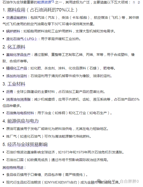 也就是说,对于石油的需求,有很多都是人类生活的“刚需”