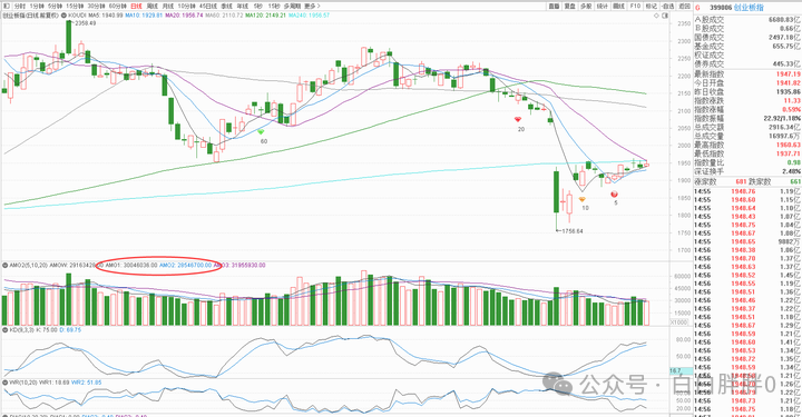 今天上证差一点,创业板已经完成五日十日均量金叉