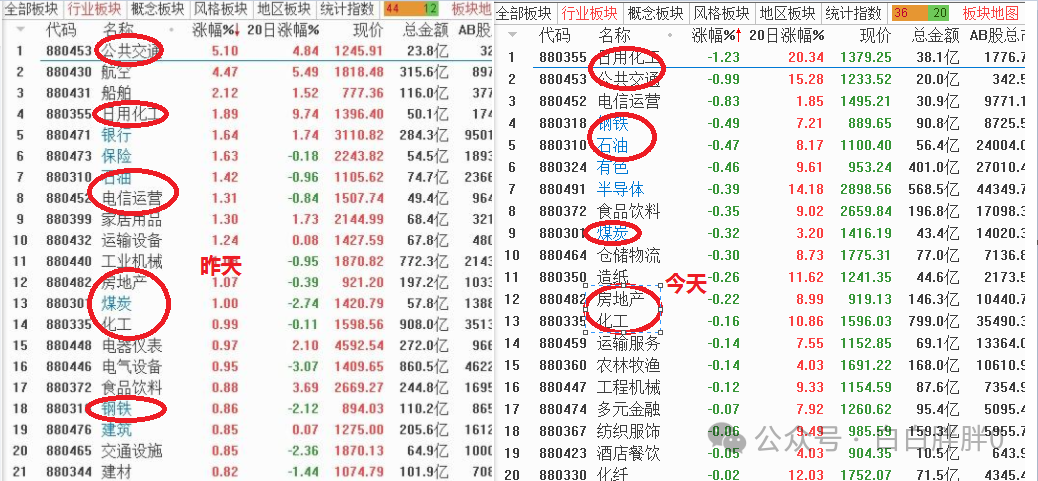 比如昨天和今天强弱板块的对比