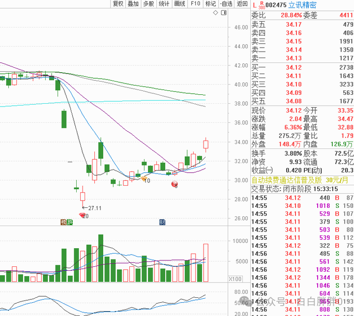 并且当日拿了直接跌停锁死的立讯精密做 例子 讲解