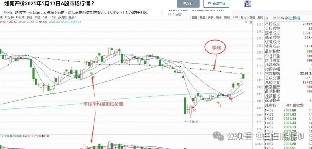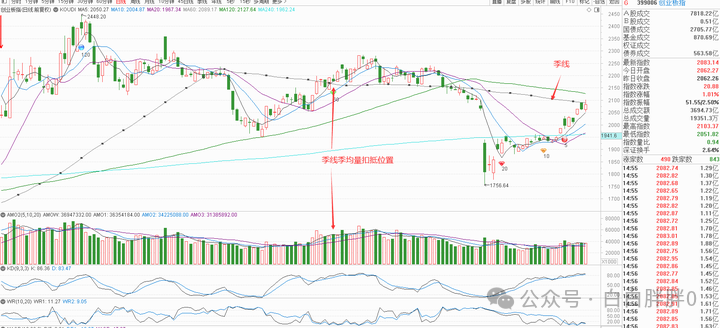 创业板收上涨后的贯穿线,无明确多空意义,中性整理K线