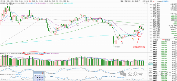 目前可以观察到的技术面信息是上证月线金叉半年线,创业板月线金叉年线