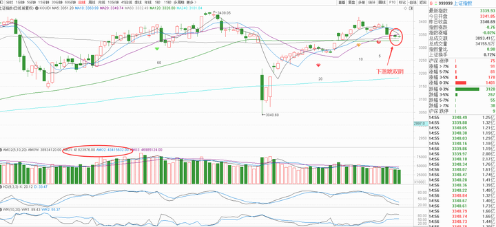 成交金额方面,两个指数如同早上所说,继续不足上涨趋势基准量,量先价行成为行情行进的主基调(不是盘整就是下跌,同时下弯的均线是压力和拖拽力,上扬的均线支撑薄弱,以及中长期均线金叉但没量的短期拉回效应)