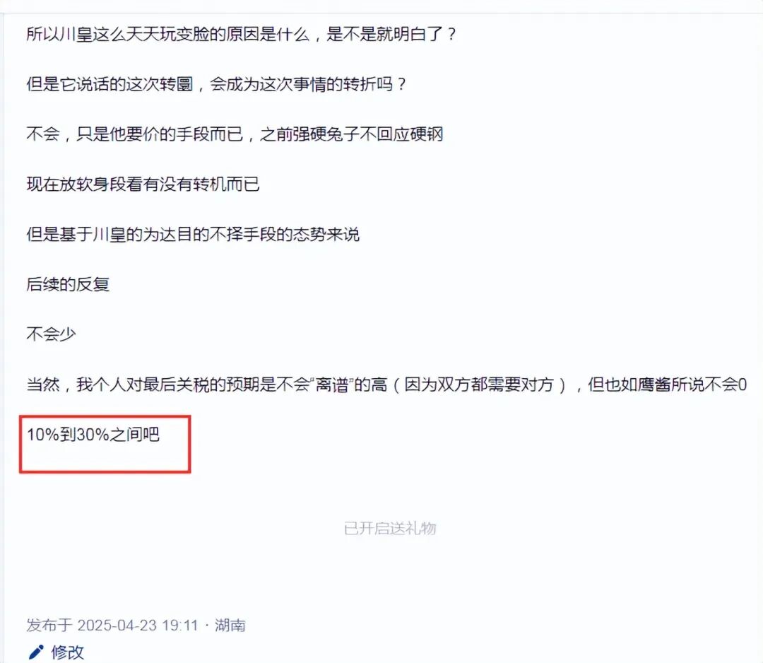 中方回应特朗普承认对自中国进口商品的关税过高,美方此前称预计税率将大幅降低,预计降到多少双方都能满意?
