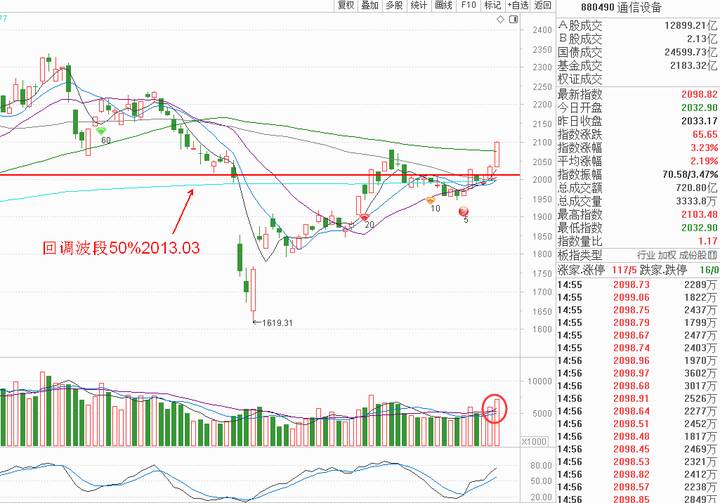 昨天再次突破回调波段50%,2013.03,今天持续增量大于上涨趋势基准量发起攻击