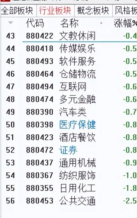 一共有56个行业板块