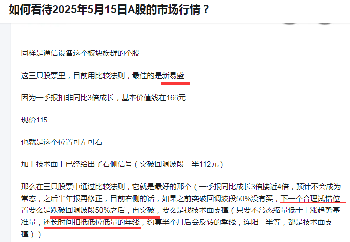 然后上面的朋友提到我5月15日提到新易盛的合理试错点