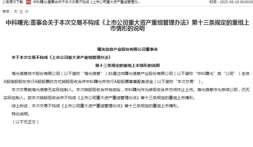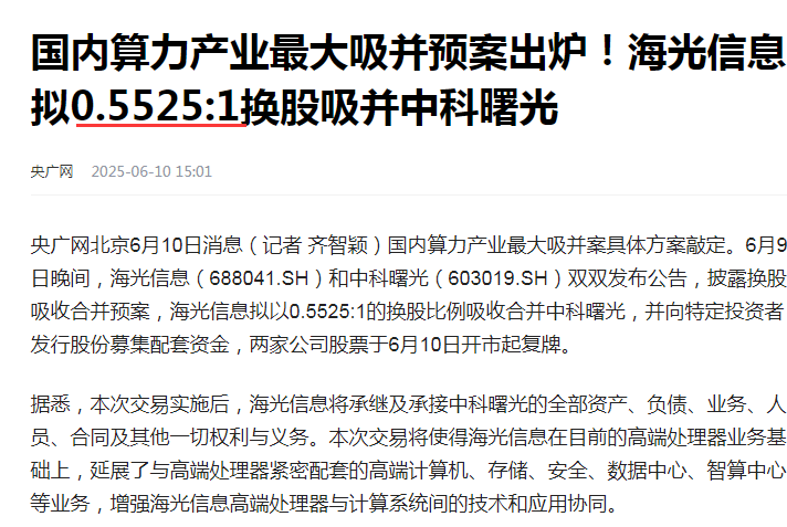 海光和曙光不是现金收购,而是换股