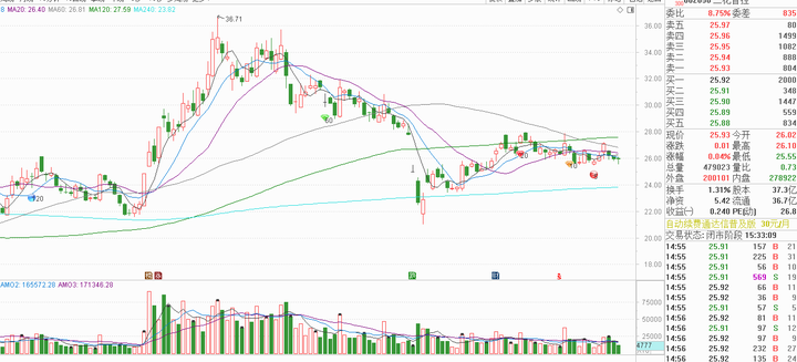 当天来到年线的时候,新易盛的五分钟技术面信息是这样的