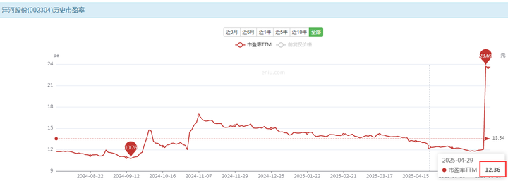 这是洋河十年最低PE的平均情况