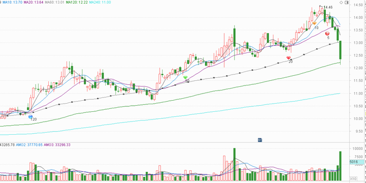 今天收盘价格依然在那之上,就不用动作(接下来右侧要做的就是每天14.55看一眼有没有跌破7.81,心大的14.57看也行,集合竞价多挂低几毛钱就能以收盘价成交卖出(仅适用于大盘股,小票流通性不一样一般的挂跌停价才靠谱))