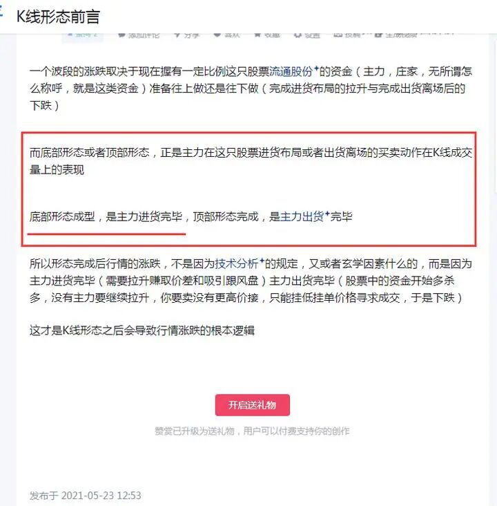 通过这篇文章的讲述,我们可以知道, 底部K线形态的完成 ,是主力 进货完毕 。