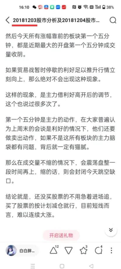 2018年12月3日,上证跳空大涨2.57%,你百度下那天关于股市的新闻(即所谓的消息)什么中美MYZ缓和之类拉,所以要大涨特涨拉。