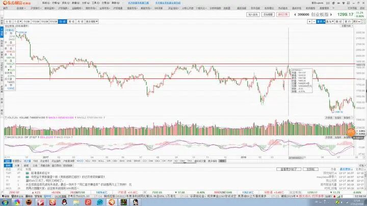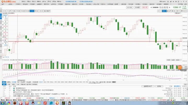 比如创业板从2017年8月15到11月23日的这一段盘整区间,整整三个月的盘整,在11月23日跌破没错吧。