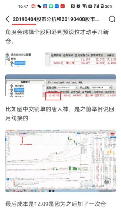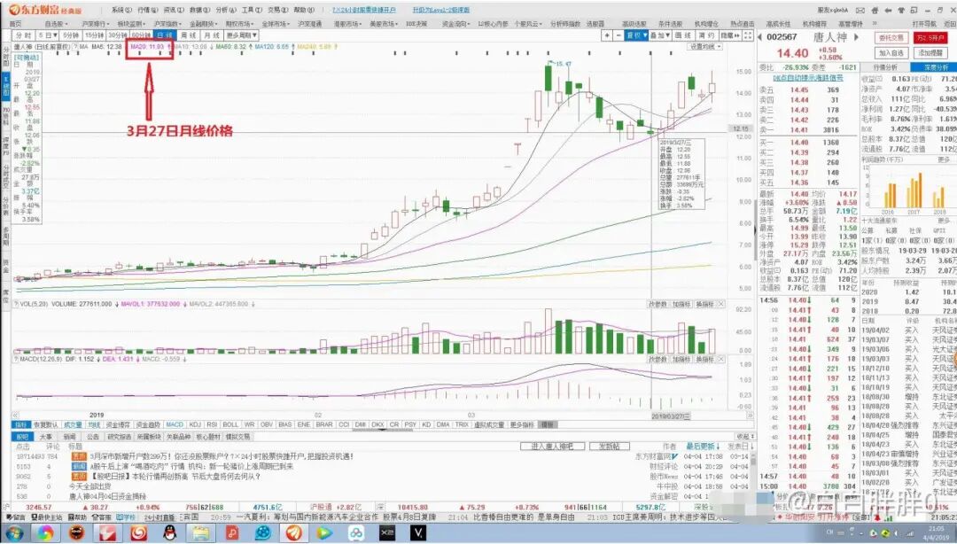 贴了我3月27日唐人神跌破二十日均线的买入交割单作为例子的持续追踪。