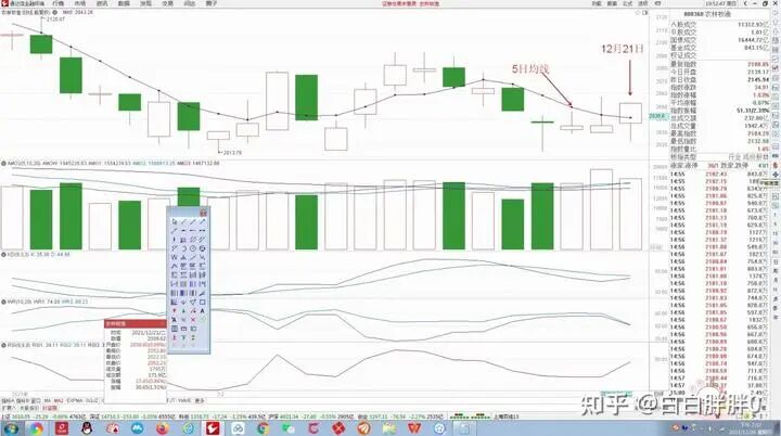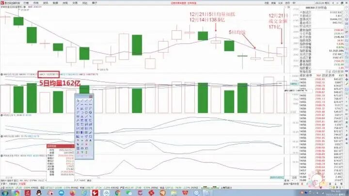 农林渔牧12月21日突破下弯的5日线时,当天171亿成交金额,大于5日扣抵量是12月14日的138.9亿,5日均量162亿,是不是从上面的知识就能理解为什么突破了?