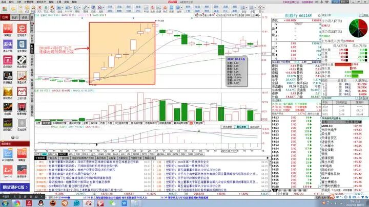 我们从8月2日之前的连续出现的阳线上攻开始看,即7月18日~7月31日连续出现的阳线。