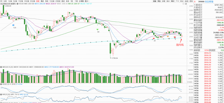 创业板开低收高,但是收盘未越过上周五K线二分之一,为颈内线,提防反弹再下杀