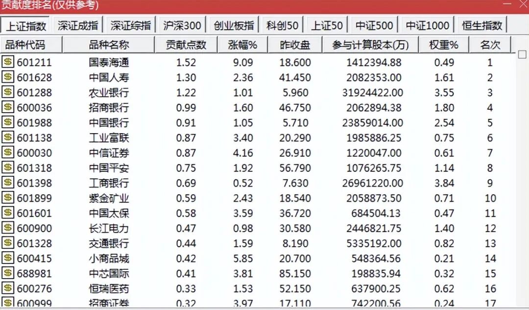 A股里,又是哪些品种的“权重”可以直接而快速的拉动指数?