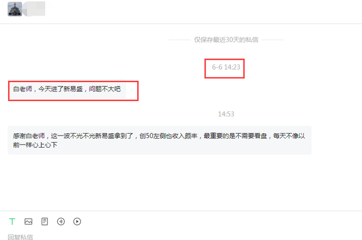 比如这位朋友,6月6日复盘的时候其实对他这个右侧交易做了解读,说分仓止盈拿就行