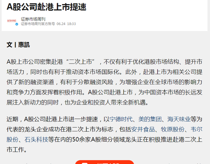 但是香港地区没有啊,跨境通在近期上线和A股龙头股批量集中卡在这个时间要赴港二次上市